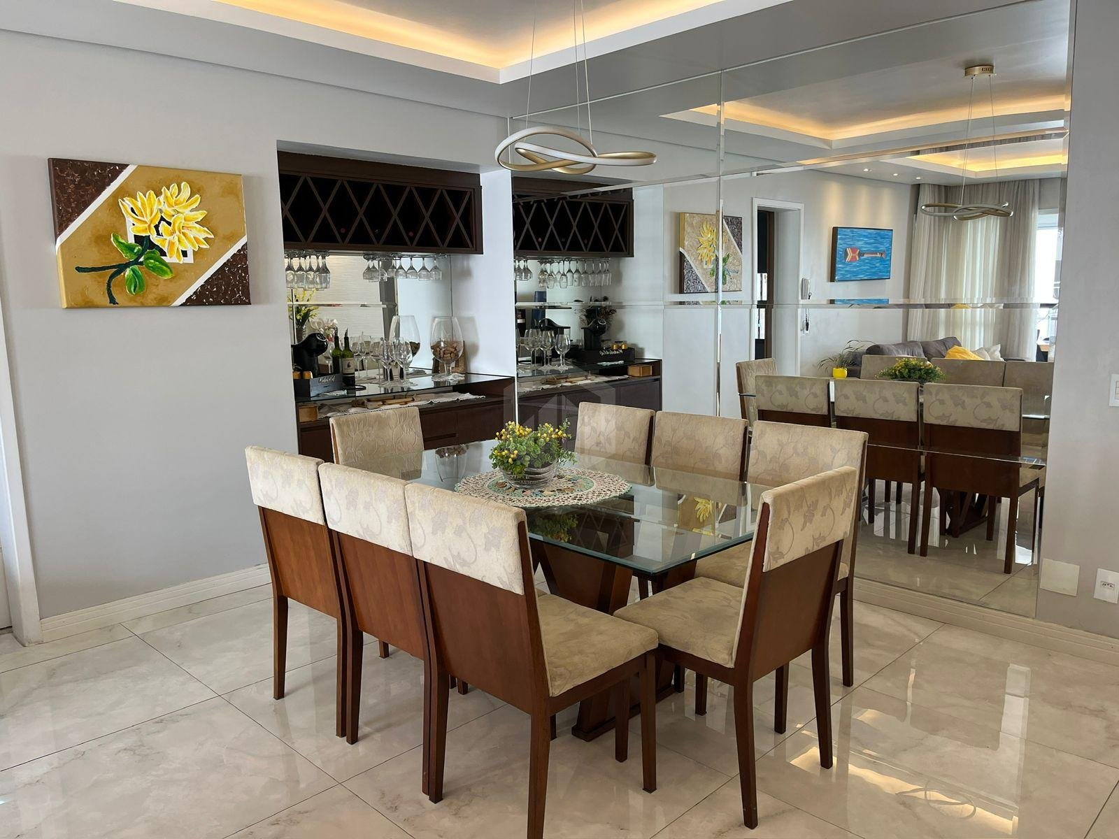 - 2 salas integradas, com painel e armários planejados, ideal para ambientes de estar e jantar;