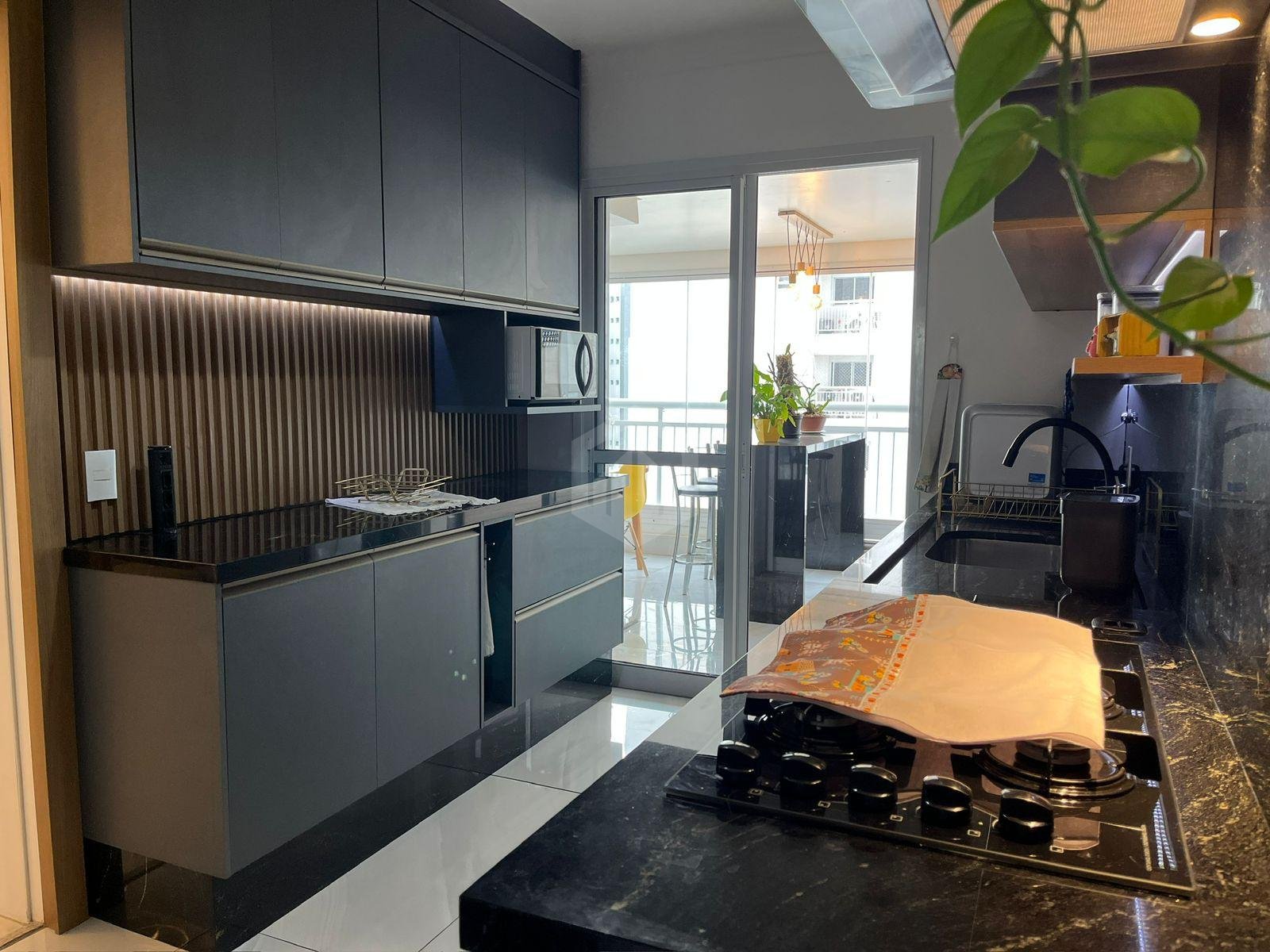- Sacada gourmet espaçosa, com armários e sistema de fechamento Reiki já instalado;