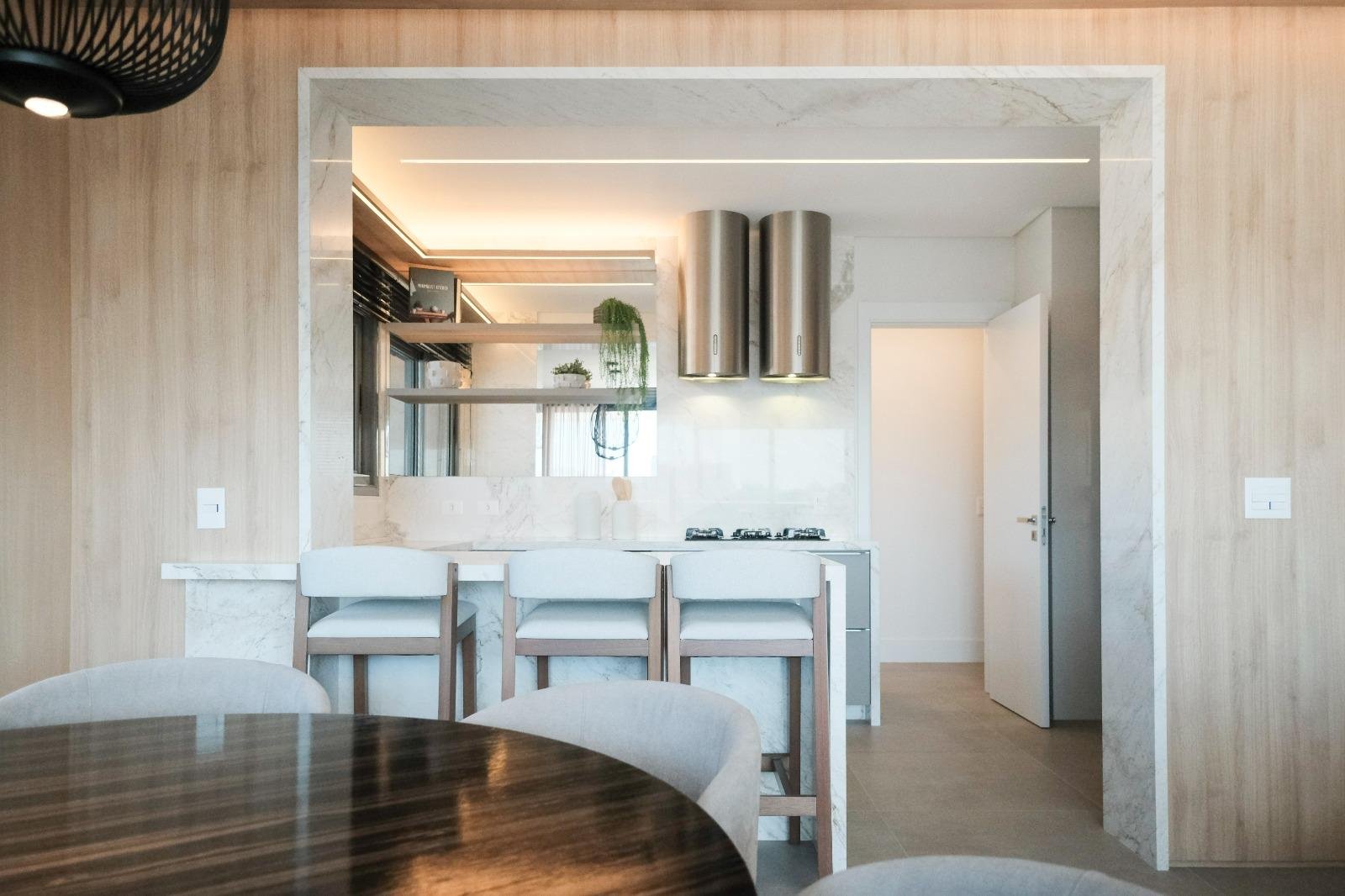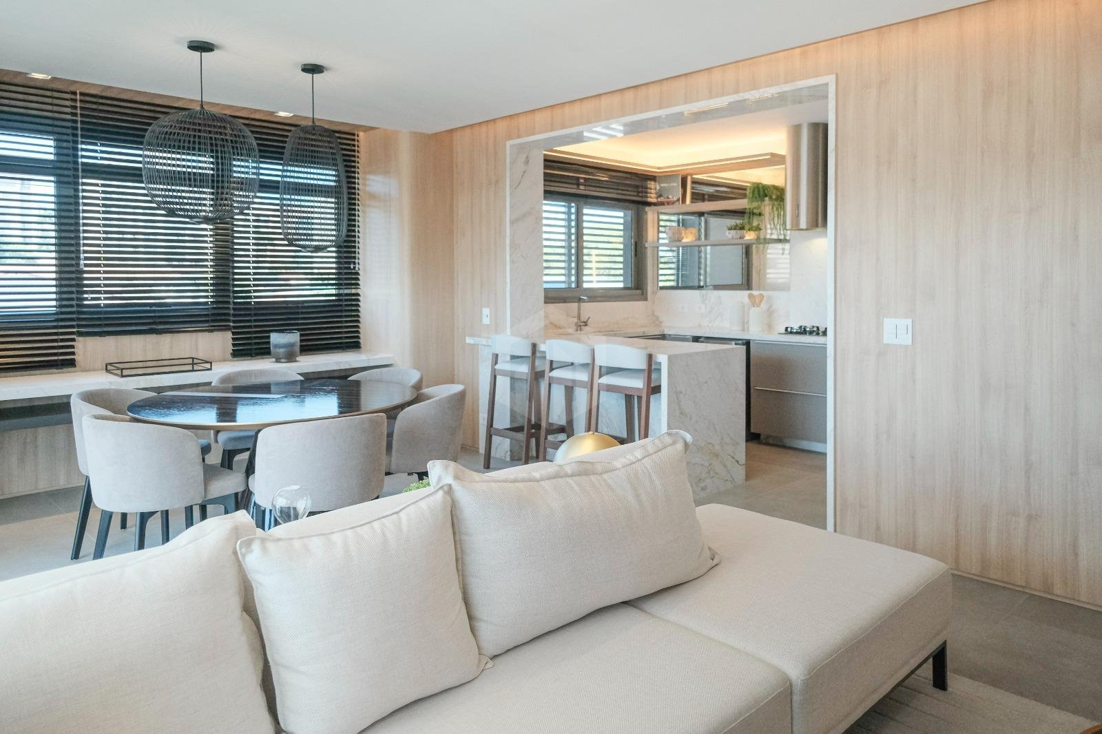 - Sala de estar e jantar integradas**, com acabamento refinado;
