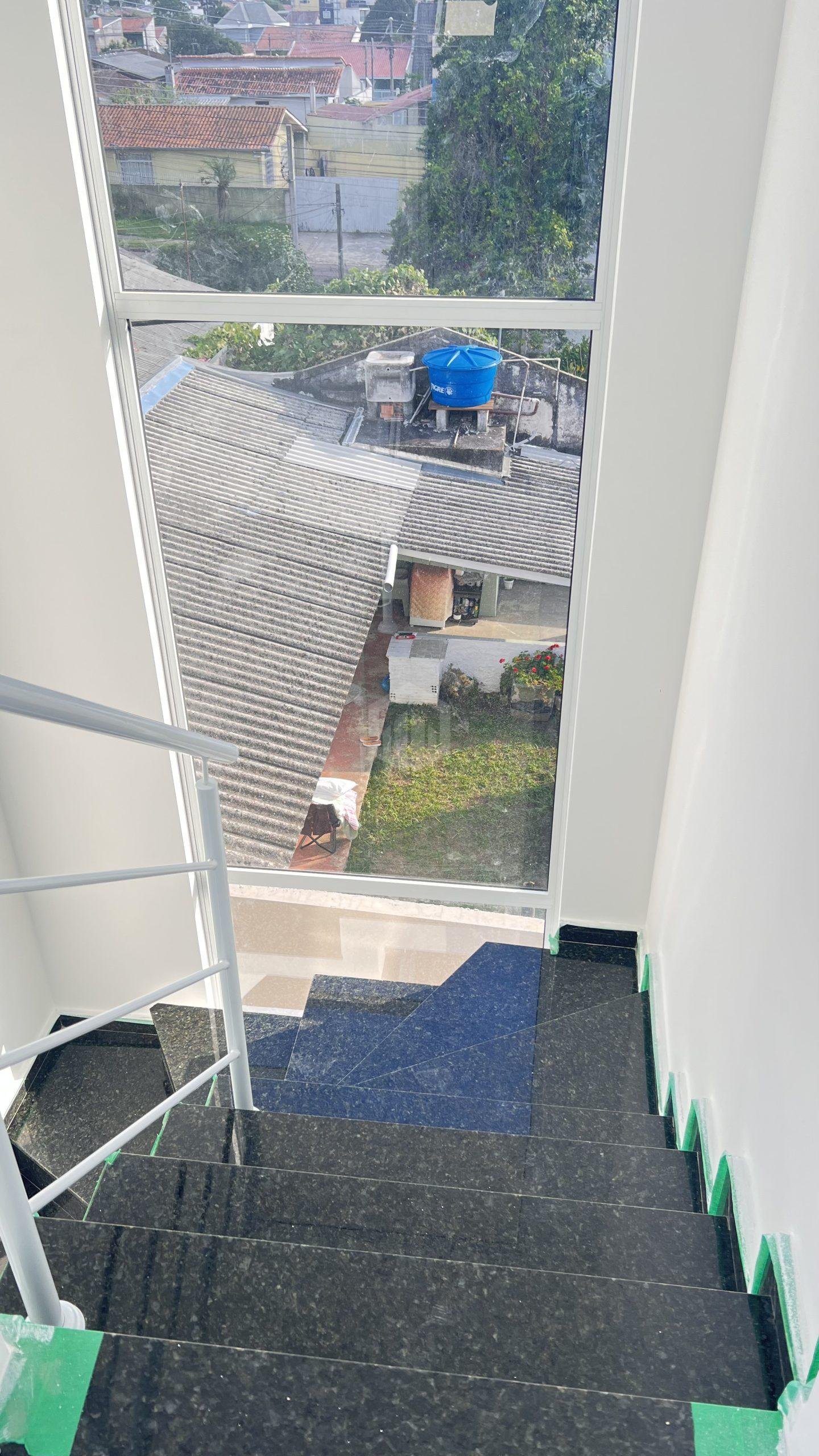 - Escadas com acabamento em granito verde labrador, um toque de sofisticação e resistência.
