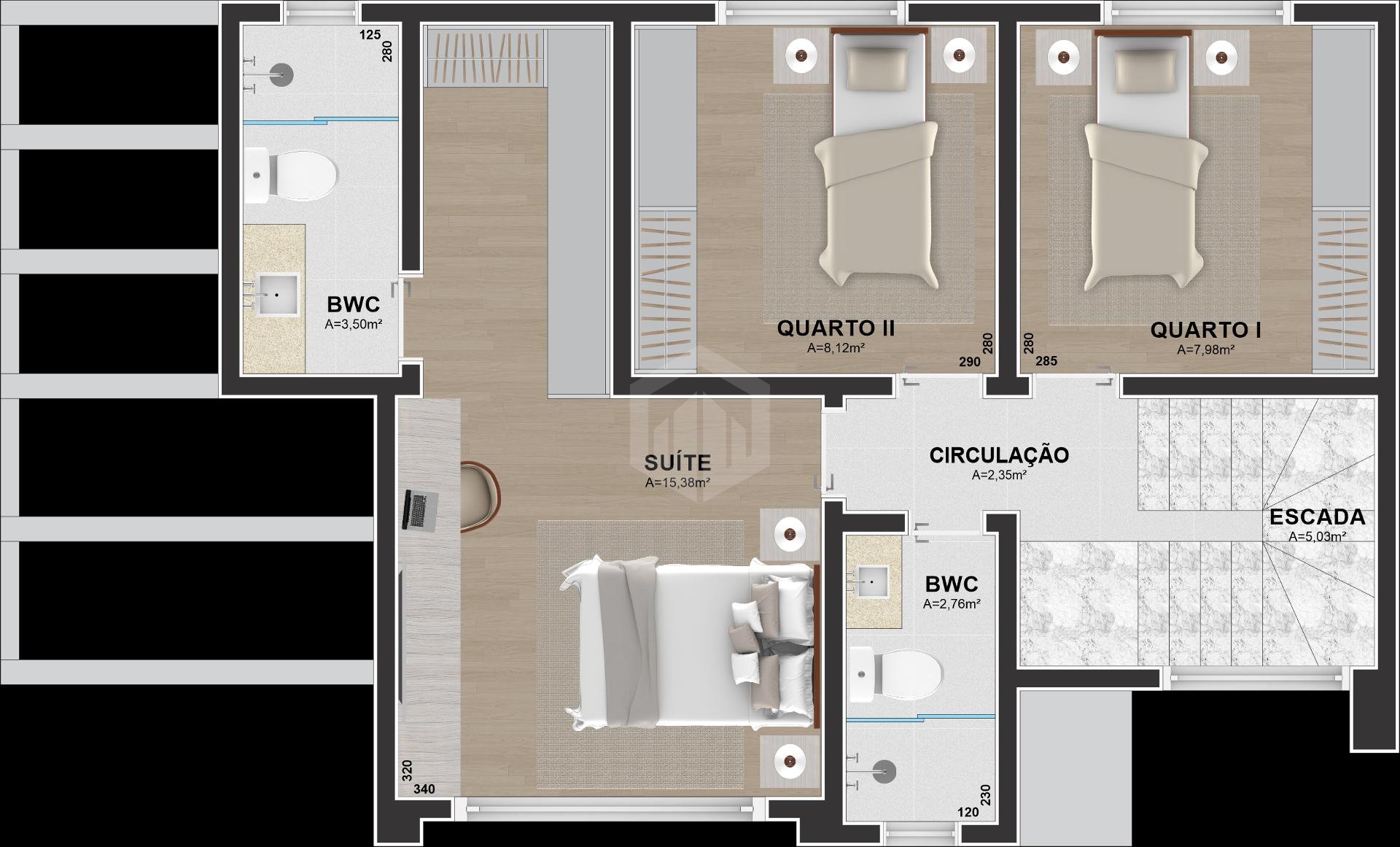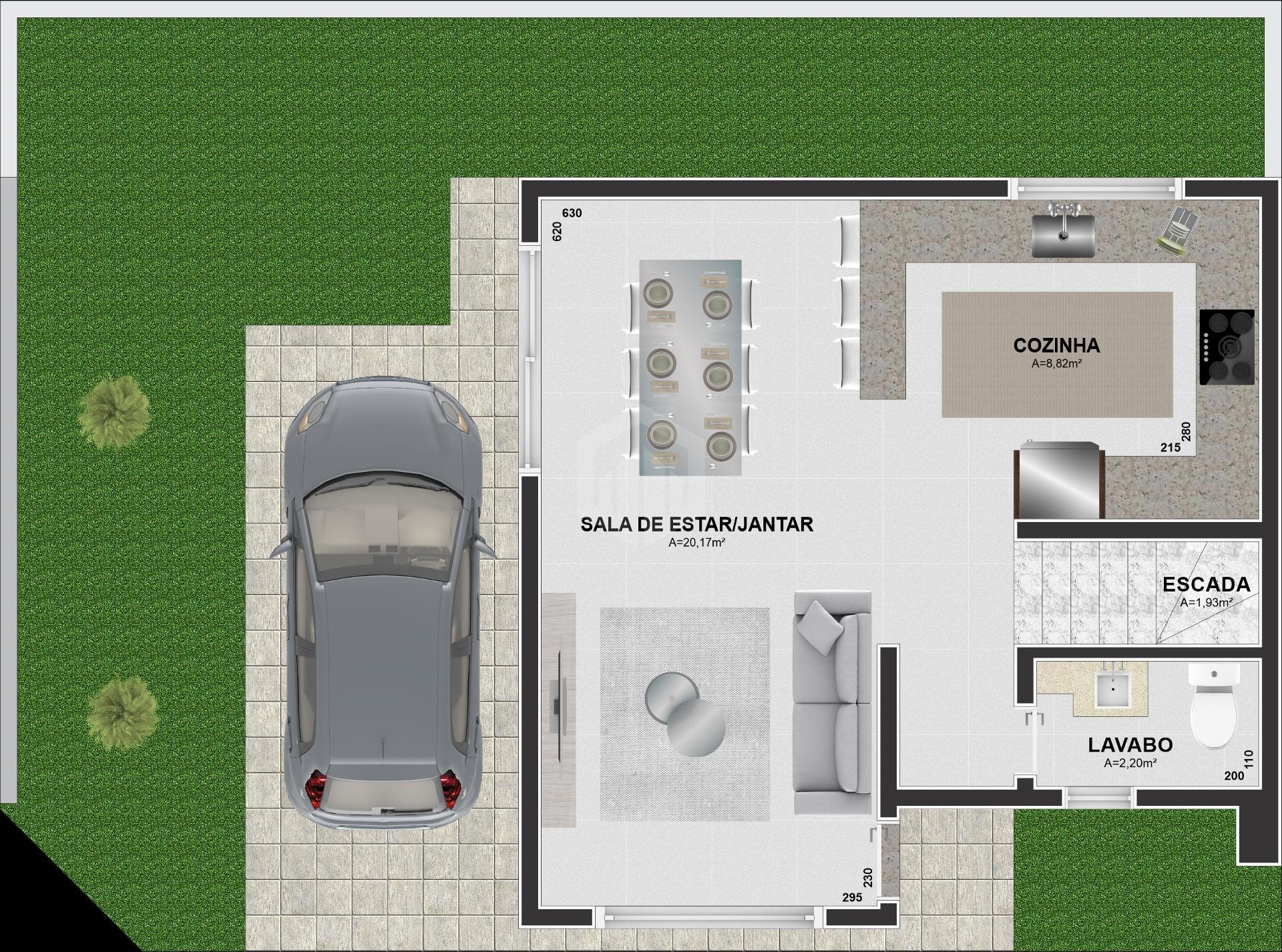 O sobrado possui três dormitórios, sendo uma suíte master com closet e sacada privativa, proporcionando um ambiente íntimo e aconchegante. O lavabo no térreo atende à área social com sofisticação, enquanto a cozinha e as salas integradas de estar e jantar valorizam a amplitude e a convivência familiar.
